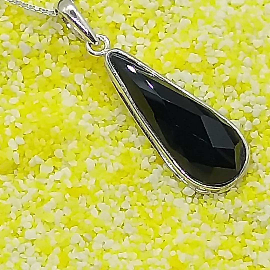 Corrente Veneziana e Pingente em Prata 925 com Gota de Ônix facetada