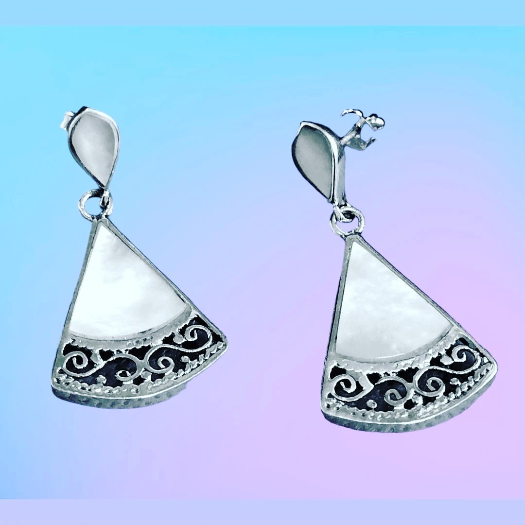 Brincos em Prata 925 Trabalhada com Madrepérolas
